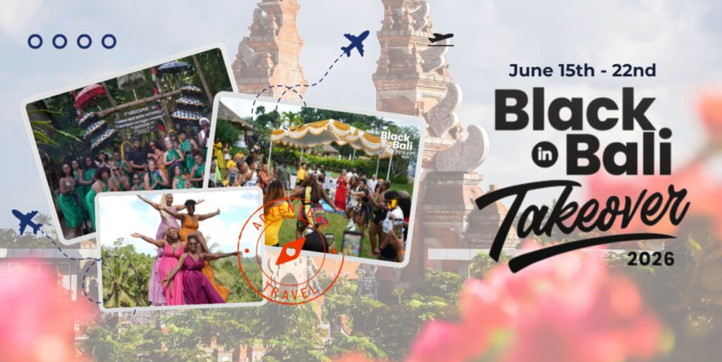 The Black in Bali Takeover returns for Juneteenth Week 2026 — a full-week cultural celebration blending luxury, community, and curated Black-centered travel experiences. Hosted in Ubud, Bali, this week-long getaway brings travelers from around the world together to celebrate freedom, culture, and connection while enjoying Bali’s incredible scenery and hospitality.