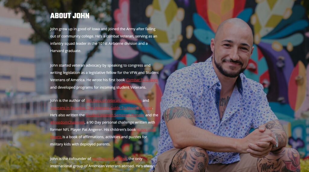 Veteran travelers and expats choose John because he provides a trusted, culturally-aware support space for military members navigating life abroad. His writing tools, mental clarity frameworks, and community resources help veterans find grounding, purpose, and healing while living or traveling internationally. Based in Medellín — one of the world’s top expat hubs — John offers guidance rooted in lived experience, authenticity, and service.